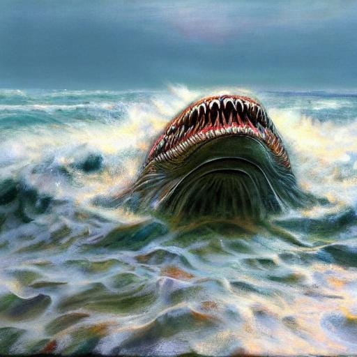 Born againIn the rear view mirror of the Anthropocene, evolution has a wicked sense of humorChristine Newton BushJun 22, 2024ShareText within this block will maintain its original spacing when publishedOnce we were gilled souls learning how to breathe the air born again, gaspingJonatha Chance | Copyright © 2024 CC-BY-NC-ND (4.0 International)Image conjured by Christine Newton Bush with Substack generative AI | Copyright © 2024 CC-BY-NC-ND (4.0 International)PreviousNext