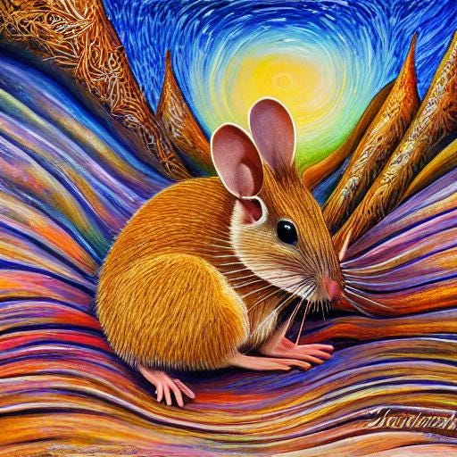 Muad'DibMicrodipodops gloriaChristine Newton BushMar 26, 20242ShareText within this block will maintain its original spacing when publishedLittle desert mouse you dwell in sand, smell of spice your name is legendJonatha Chance | Copyright © 2024 CC-BY-NC-ND (4.0 International)Devotional icon conjured by Christine Newton Bush using Substack Generative AI | Copyright © 2024 CC-BY-NC-ND (4.0 International)PreviousNext