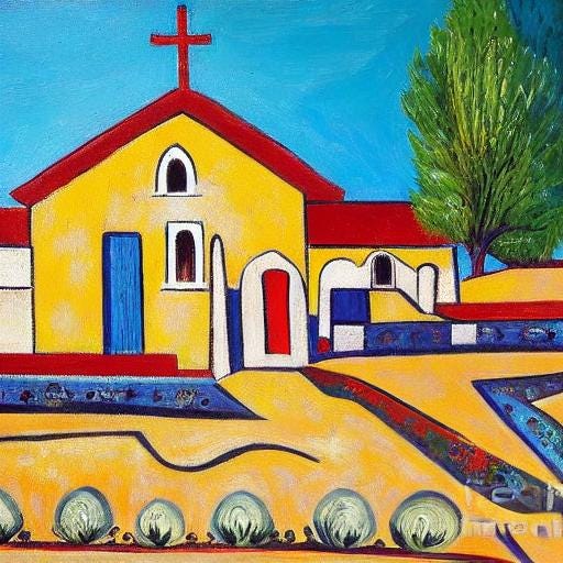Ranchos de Taos churchFranciscan mystiqueChristine Newton BushJan 06, 2024ShareText within this block will maintain its original spacing when publishedRanchos de Taos church high desert adobe muse Adams, O'Keefe, StrandJonatha Chance | Copyright © 2024 CC-BY-NC-ND (4.0 International)Image conjured by Christine Newton Bush using Substack Generative AI | Copyright © 2024 CC-BY-NC-ND (4.0 International)PreviousNext