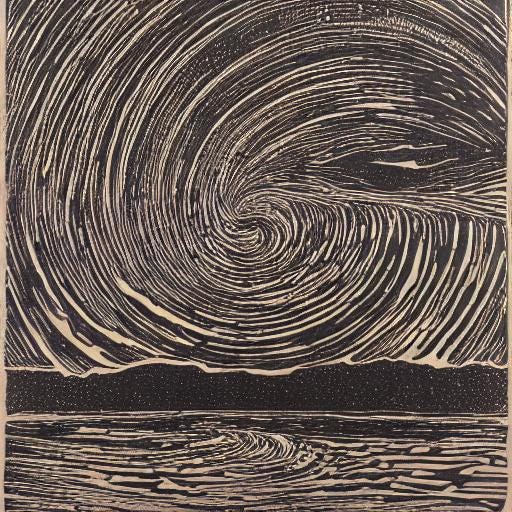 Spinning, Part OneTwilightChristine Newton BushJan 11, 2024ShareText within this block will maintain its original spacing when publishedWhen the stars arrive we are placed into context curious dreamersJonatha Chance | Copyright © 2024 CC-BY-NC-ND (4.0 International)Etching conjured by Christine Newton Bush using Substack Generative AI | Copyright © 2024 CC-BY-NC-ND (4.0 International)PreviousNext